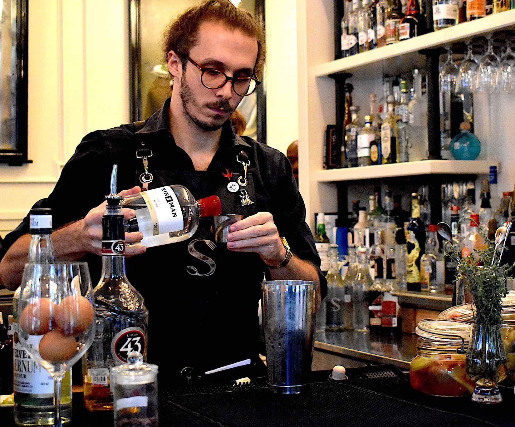 Stephen Spencer is one of the barkeeps you can thank for the Velvet Alejandra. The former barista hails from Dallas and graduated with a degree in English literature from St. Edwards University in Austin. The last place he visited was Big Bend National Park (don’t get me started), and his biggest regret is not getting a tailored suit in Paris. Me too Stephen….me too….