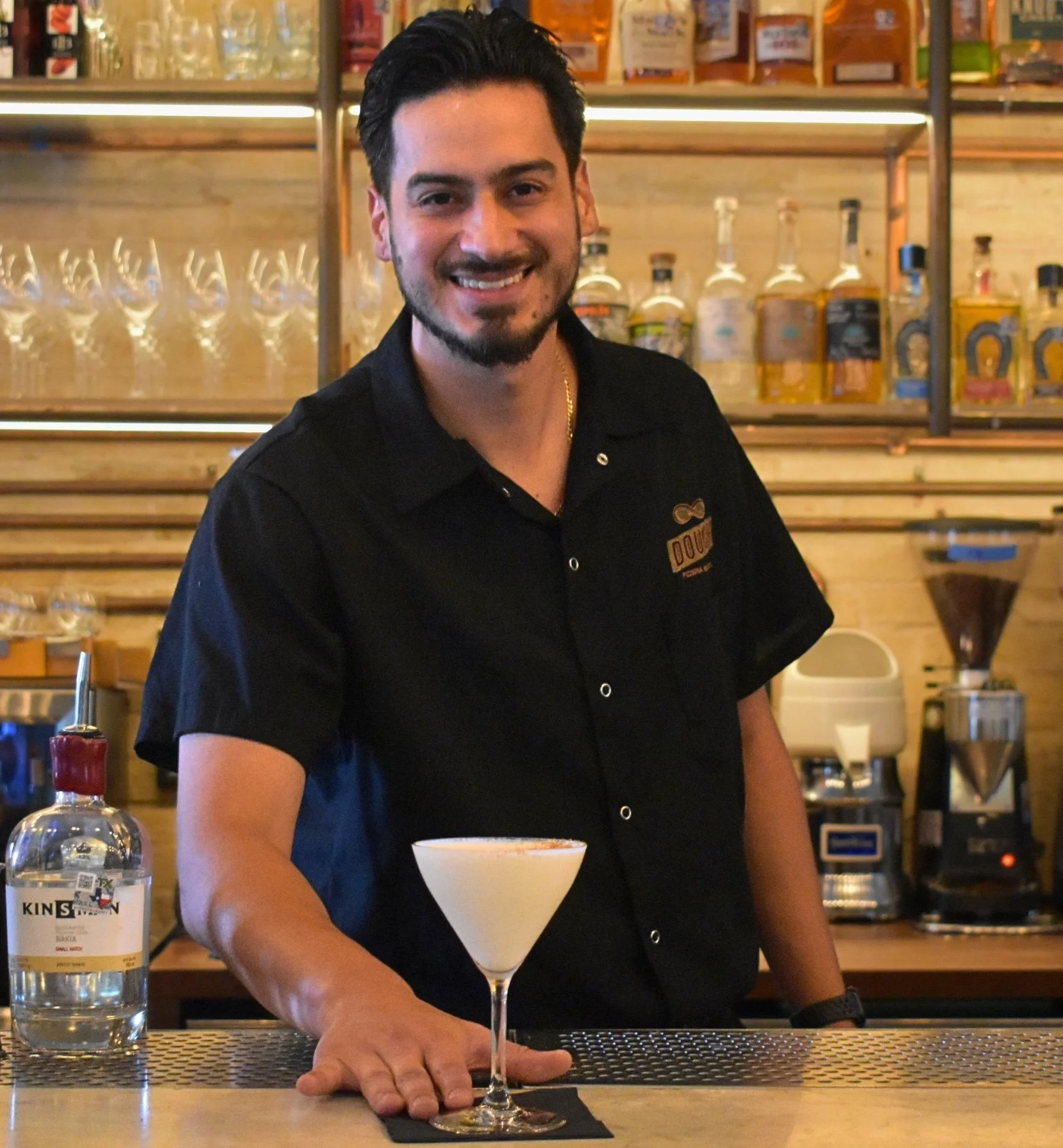 Josh Galvan is the bar magician behind the Brandy Alejandro con Leche at Dough. He’s taken the classic creamy cocktail and spun it straight into his childhood, landing on a drink that tastes like a grown‑up version of the arroz con leche his mom used to make. Josh is a Houston native who moved to San Antonio a little over a year ago to be closer to his six‑year‑old son. When he’s not behind the bar at Dough, you’re likely to catch him golfing, running, working out, or tracking down any and all seafood he can get his hands on. He went to Texas State University, dreams of eventually retiring in Monterrey, Mexico where his mom is from, and has Japan sitting high on his travel bucket list. In the meantime, he loves the fact that a bar is basically the world’s best networking event that never ends—he’s in his element talking with guests, trading stories, and introducing people to new flavors one cocktail at a time.